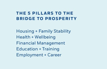 Like all programs at ECS, the RRH is not a silo. ECS emphasizes the importance of working with each family on addressing the various “pillars” of their lives which help move them along the Bridge to Prosperity.