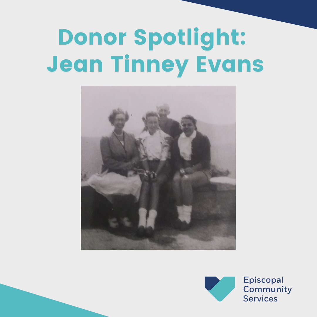 As an adult Jean married, raised children, and eventually settled in Solebury, Pennsylvania, where she has been a parishioner of Trinity Church for the past 20 years. Jean reengaged with ECS when she served as Chair of the Outreach Committee at Trinity. Over the years she put on baby-showers for St. Barnabas and provided move-in supplies for families leaving shelter. Jean and Betty remained close. After a brief marriage, Betty remained single and passed away in 1996. Betty’s spirit lives on through the charitable service and support that Jean provides ECS and several other beloved service organizations.